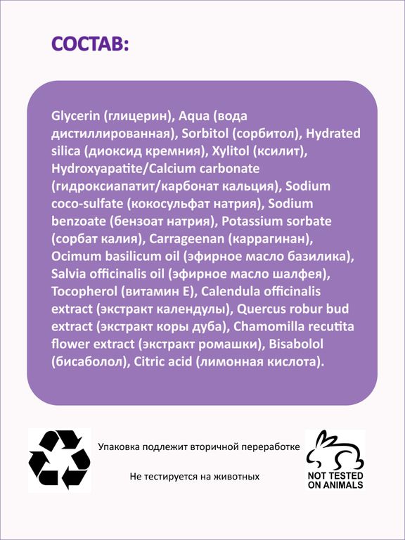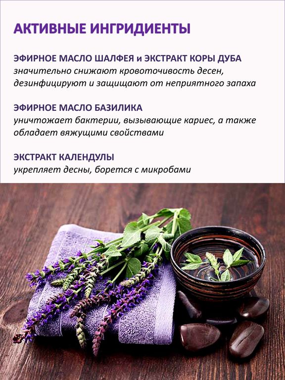 Страдаете от повышенной чувствительности и кровоточивости десен? Чтобы справиться с ней, нужны специальные средства для особенно бережной гигиены полости рта. Натуральная зубная паста "Шалфей и базилик" мягко очищает, эффективно борется с воспалением и кровоточивостью, гарантируя полноценную защиту, здоровье и красоту ваших зубов и десен.
